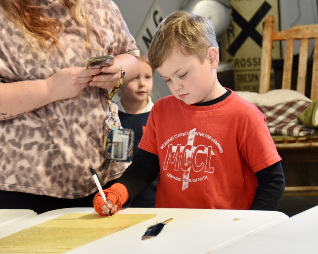 Local children and families came out to the Meridian Railroad Museum on Thursday to sign a copy of ...