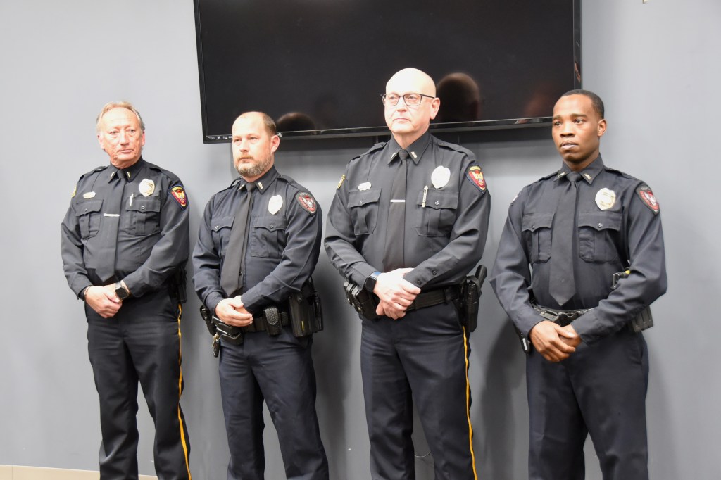Police Chief Malachi Sanders said each of the four officers did well on the merit-based testing needed to reach the lieutenant rank, as well as an interview. The promotions show the officers’ abilities and the support they have from their families, he said.