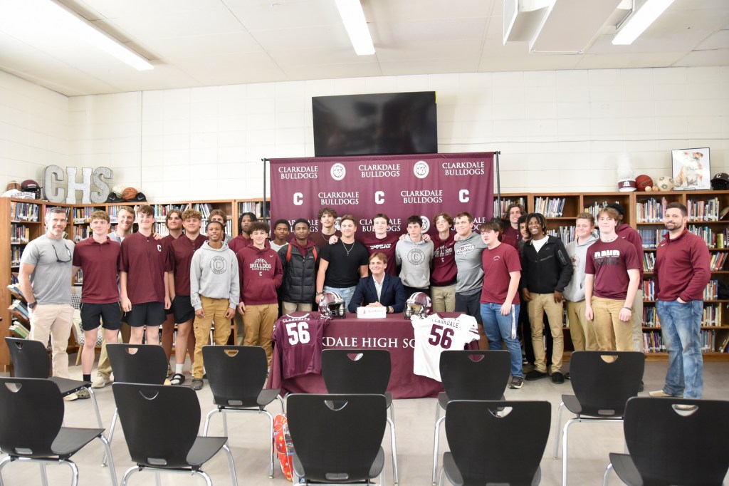 The Clarkdale Bulldogs football team celebrated one of their own on Friday as Bryson McCallister signed to continue playing football at Hinds Community College after graduation.